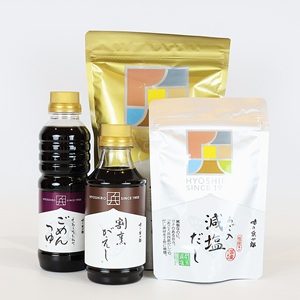 長崎県平戸産の焼きあごをはじめとする6種類の国産だし素材に、塩や醤油を加え味を調えたあごの旨み豊かなだしパック。「ご家庭でも手軽に、おいしい料理を食べてもらいたい」との願いから、昭和63年に”あご入りだしパック”を日本で初めて開発しました。これひとつでいつもの料理がぐんとおいしくなる手軽さを実現します。