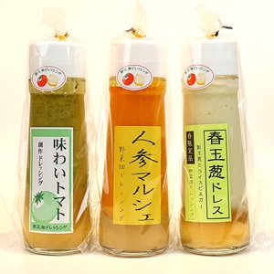 レギュラー商品に加え、春は「新玉葱のドレッシング」、夏は「柑橘系ドレッシング」、秋は「秋梨ドレッシング」、冬は「冬大根ドレッシング」と季節限定商品も豊富にお取り扱いしております。